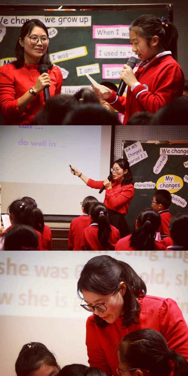 英语组何春玲老师的《Changes》从appearance,characters,activities,hobbies和abilities,让同学们感受在成长过程过程中,不仅是外貌性格的改变,自身能力也一直在提升,利用听、阅读、句型操练、小组合作交流,最后用一般过去时、现在时介绍自己在小学6年的变化。
