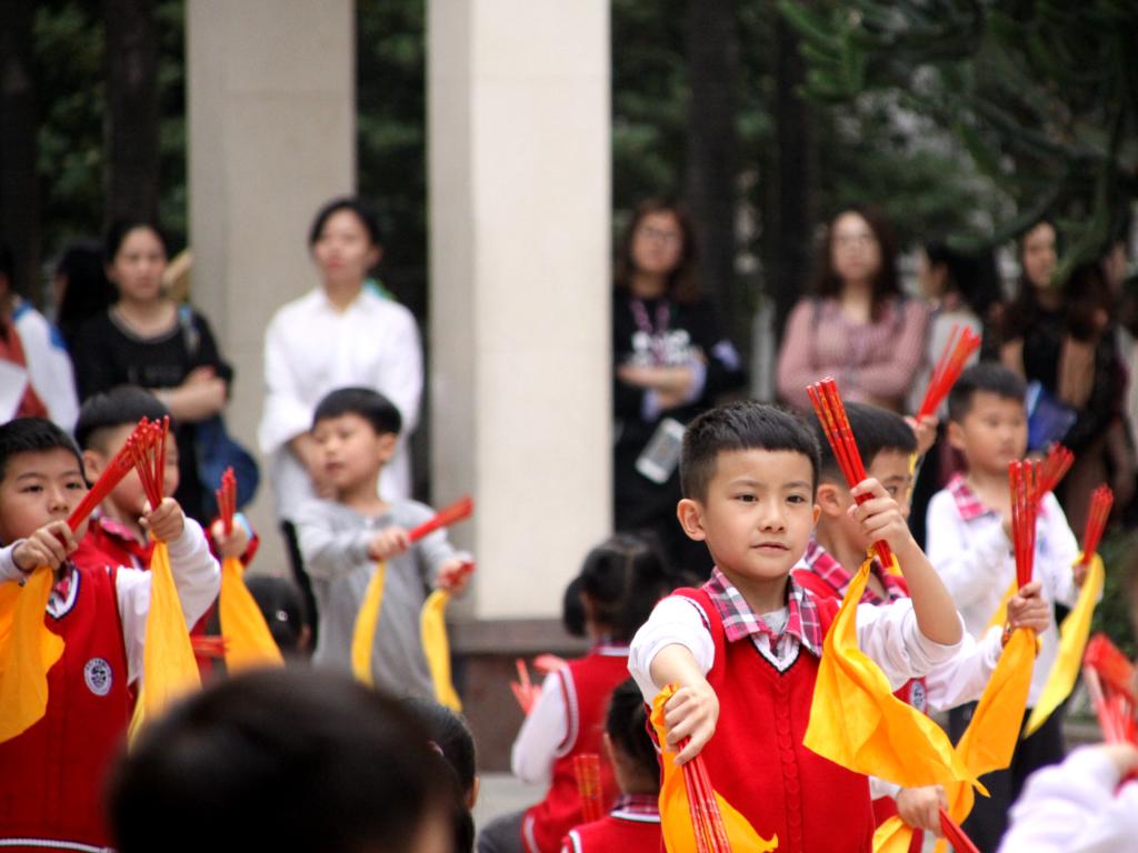 课后,家长们领着小朋友们观看特色大课间活动。师生们列队布满校园,他们挥舞手中的筷子整齐有序,清脆悦耳的筷子声回荡在整个校园,年级特色活动也让在场的小朋友们跃跃欲试。