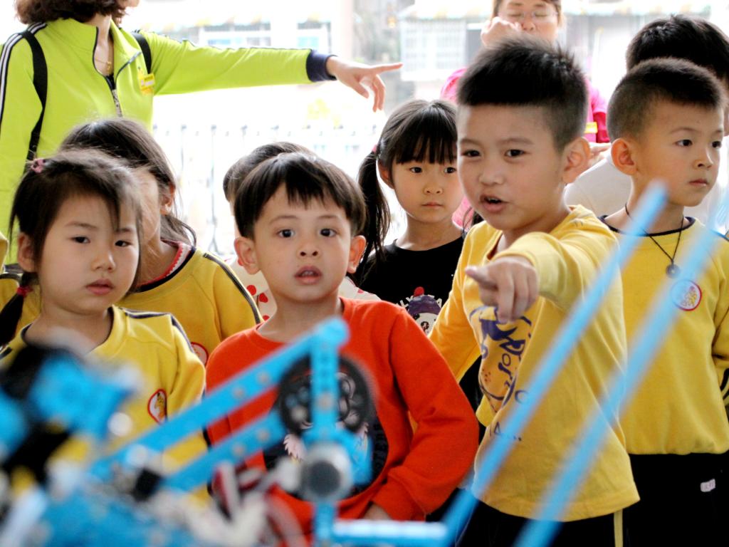最后,大家兴致勃勃地进行棒球、STEAM课程初体验,小朋友们分别在九宫格、T-ball里体验持棒击球和网格投掷,体验棒球特色乐趣。还有一部分小朋友们进行全向轮、投石机、摩天轮、直升机、F1赛车等科技项目体验。