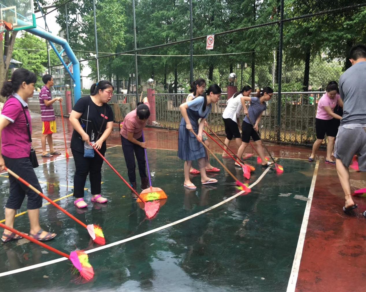 灾后清淤工作特别繁重。6月9日,全校大部分教职工及部分学生和家长自愿返校清除淤泥,冲洗校园。近两天的辛勤劳作,淤泥终于清理干净了,各个课室也进行了消毒处理。在大家的共同努力下,校园又重现了往日的美丽。