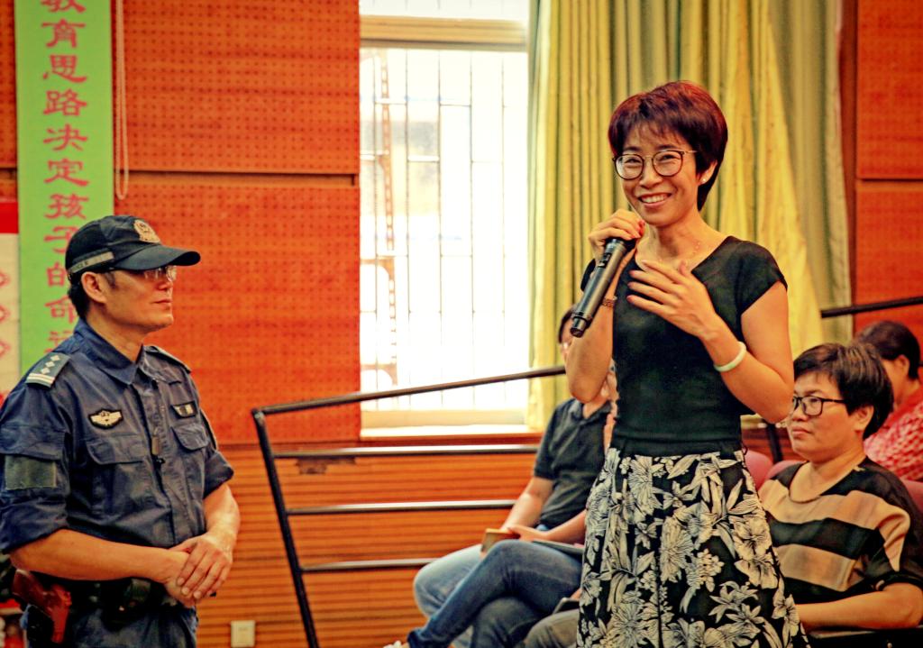 在大家惶恐之际,黄教授相机指导大家如何学会利用肾上腺素与颜色预警机制,克服恐惧,在突发事故时采取正确的应急处置规程。黄教授再次邀请老师们上台,演示遭遇疯狂砍杀时自我防护的正确示范、逃生技巧及一些正当防卫的手段。
