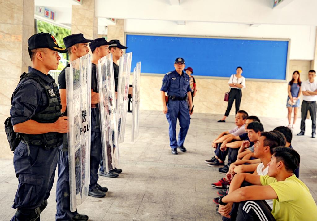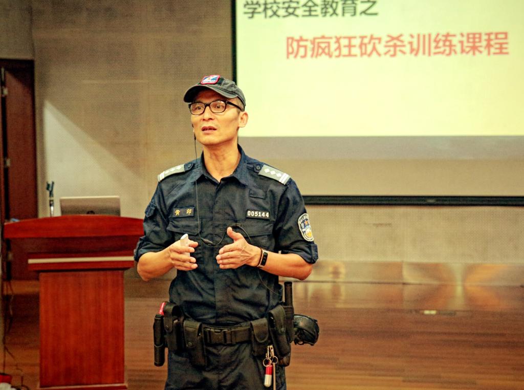 本网讯 校园遭遇突发暴力事件,同学们应该如何自我保护?学校应该怎样应对避险?为进一步强化校园安全意识,9月1日,来自广东警官学院战术系的黄印、丁勇教授及警察战术协会的教官们为全体教职工上了一节校园防砍杀及应急处置培训课程。