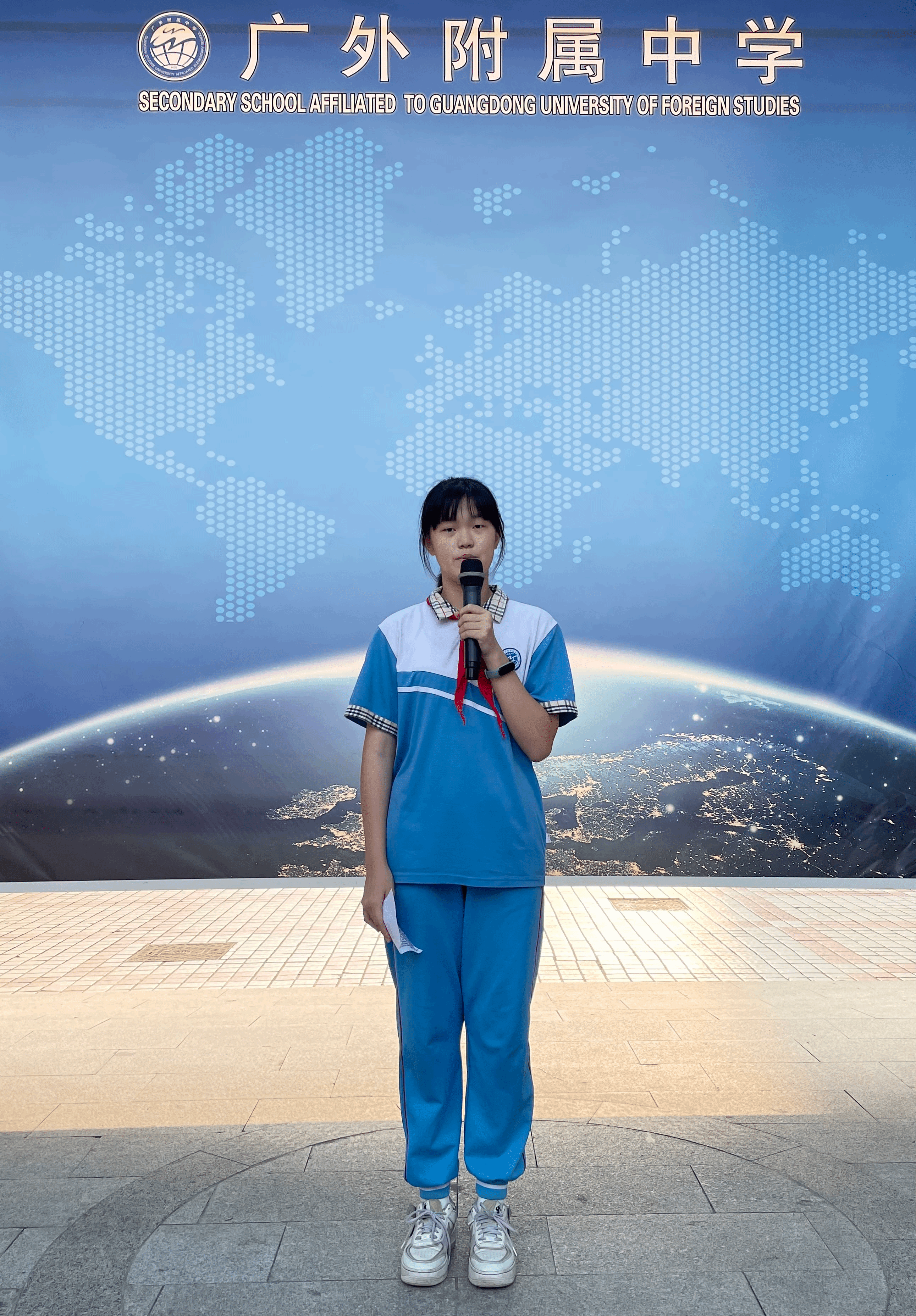 一、校学生会监察部丁贝妮同学进行国旗下讲话。