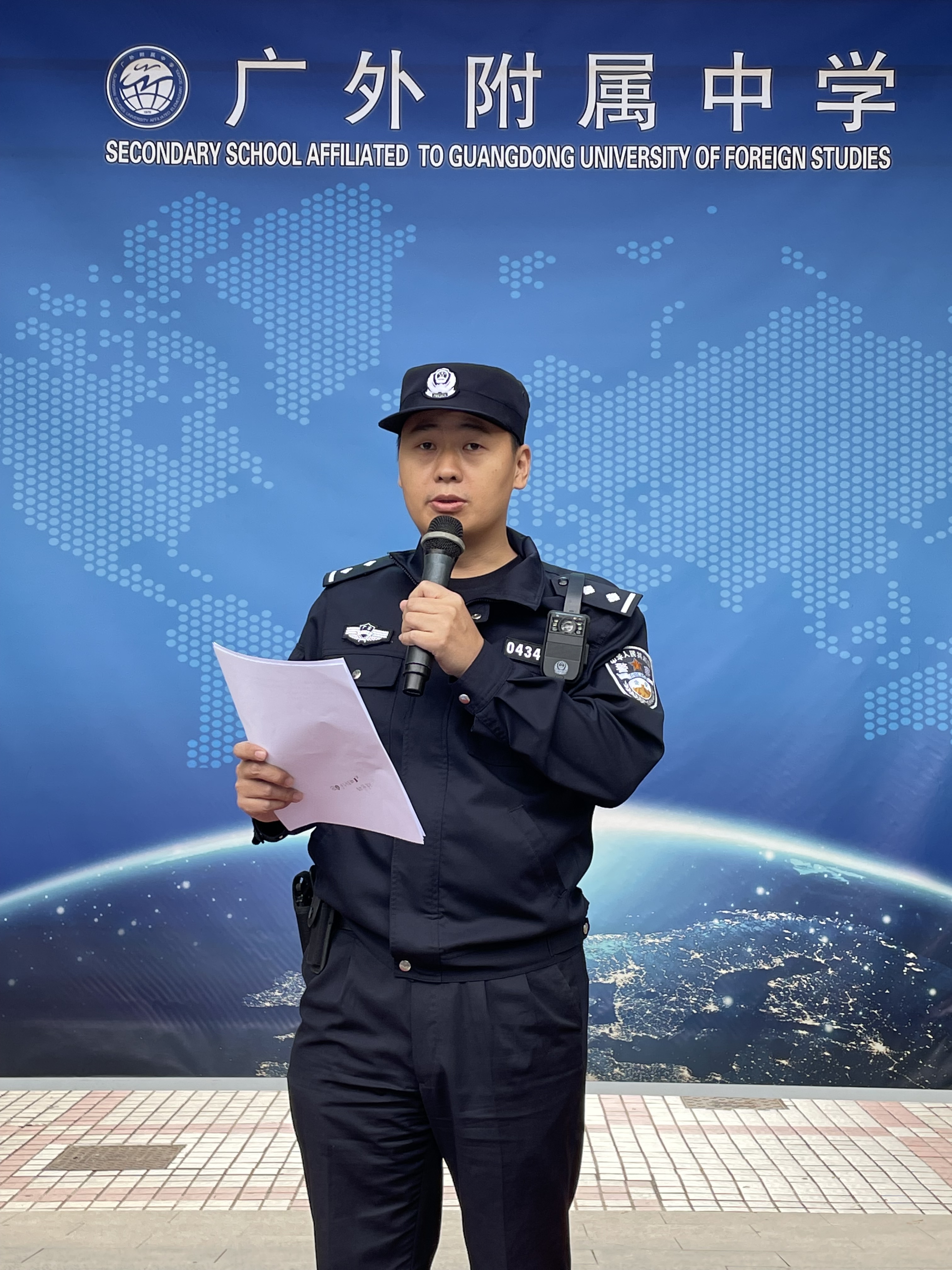 一、我校邀请王警官进行国旗下讲话,为大家普及法律知识。