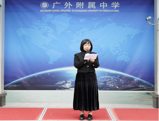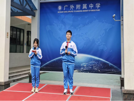 第三项:学生会主席邱紫琪作国旗下讲话,她的主题是《与榜样同行,做追光少年》,她倡议同学们向榜样学习,努力做最好的自己,展示自己最好的一面。