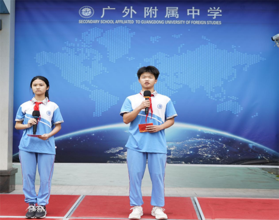 为了进一步加强学校安全管理,提升管理水平,提高教育质量,全面优化育人环境,创建平安、文明、健康的和谐校园,促进和保障青少年学生全面发展、健康成长。我校中学部举行了以“筑牢安全防线,创建平安校园”为主题的升旗仪式。升旗礼在学校小操场进行,来自初二2班的莫梓嫣和付博文主持