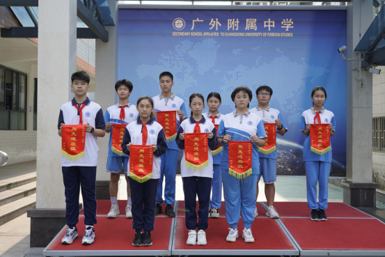 最后,颁发上周流动红旗。获得流动红旗的班级是初一(2)、(3)、(4)班,初二(2)、(3)、(4)班,初三(2)、(3)、(4)班。
