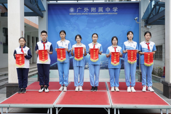 接着,学生发展中心胡琴主任宣读上周获流动红旗班级,他们是: 初一(2)、初二(1)、初二(4)、初三(1)、初三(4)、初一(3)、初二(3)、初三(3)。
