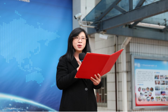 随后,教师发展中心主任杨波老师国旗下讲话。杨主任给我们介绍了冬至的来历以及一些中国南北方冬至的不同风俗习惯,让孩子们感受冬至节气文化的内涵,加深学生对传统节日的认识,追寻民族文化根源,鼓励同学们增强文化自信,自觉传承中华优秀传统文化。同时,她号召同学们要在寒冬中磨练意志,珍惜光阴,努力充实自己,在奋斗中成长。
