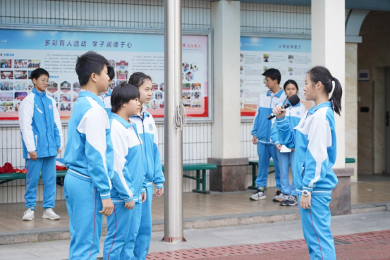 仪式由初三(2)班的莫梓嫣、吴昌轩主持。