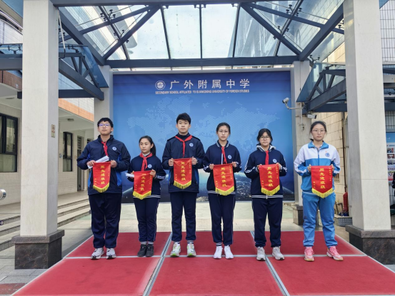 最后,颁发上周流动红旗。获得流动红旗的班级是:初一(1)、(3)、(4)班;初二(2)、(3)班;初三(2)班。