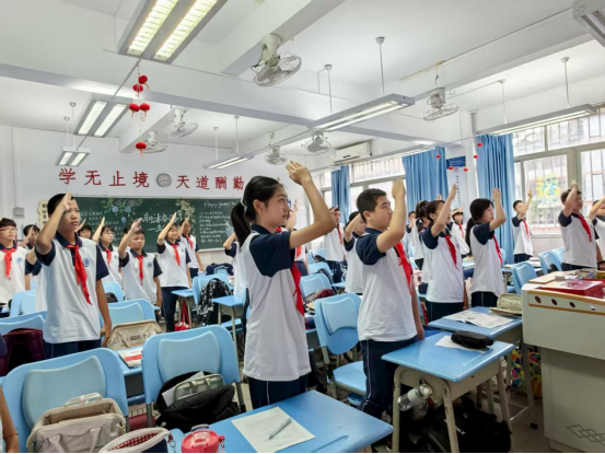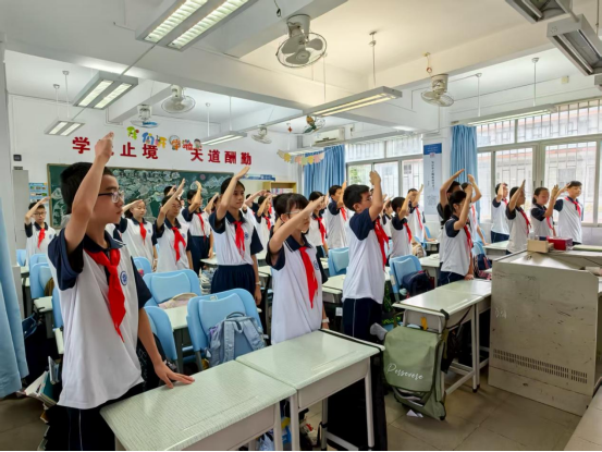 首先,在室内举行庄严的升旗仪式,同学们以饱满的热情唱响国歌,向国旗敬礼。