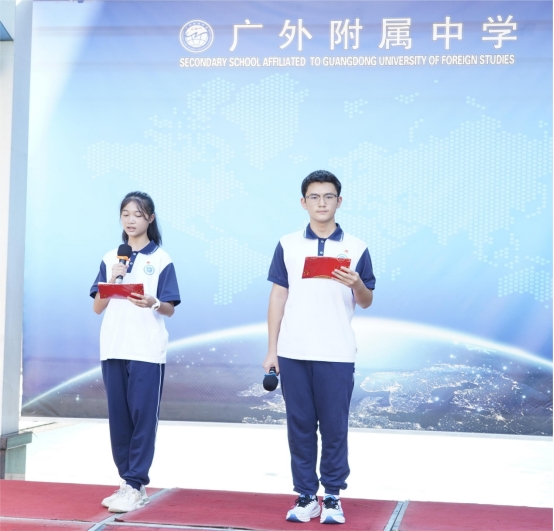 为了将爱国情感与中华文化传承深度融合,强化全体师生的爱国意识与民族认同感,挖掘广府特色文化的当代生命力,增强我校师生对本土文化的认同感与自豪感,焕发广府文化活力;为了激发全体同学对中华文化与广府文化的兴趣,培育文化自觉与自信,推动文化在新时代的传承、传播与创新,今天早上,我校中学部全体师生齐聚操场,举行了一场以“弘扬中华文化,焕发广府活力”为主题的升旗仪式。主持人是来自初三年级的李敏瑜、梁国琛。