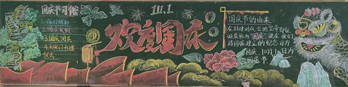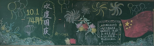 各班师生积极行动,利用课余时间,精心设计的黑板报形式多样、色彩鲜艳、主题鲜明。师生用自己的画笔表达着对祖国浓浓的爱,为这个举国欢庆的日子送上了一份美丽的画卷!
