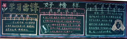比赛得到了同学们的积极响应,各个班级认真准备,自主查找资料,充分利用黑板报这块宣传阵地,对雷锋的生平事迹和精神风貌进行了广泛的宣传和报道。一块块黑板报主题鲜明,布局合理,版面设计精美、图文并茂,内容涉及雷锋同志的生平事迹、雷锋日记和雷锋名言录等,比较全面地诠释了雷锋精神,激发了同学们向雷锋同志学习的热情,具有很好的宣传教育作用。