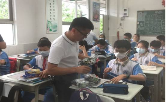 学校领导为学生派发“六一”礼物