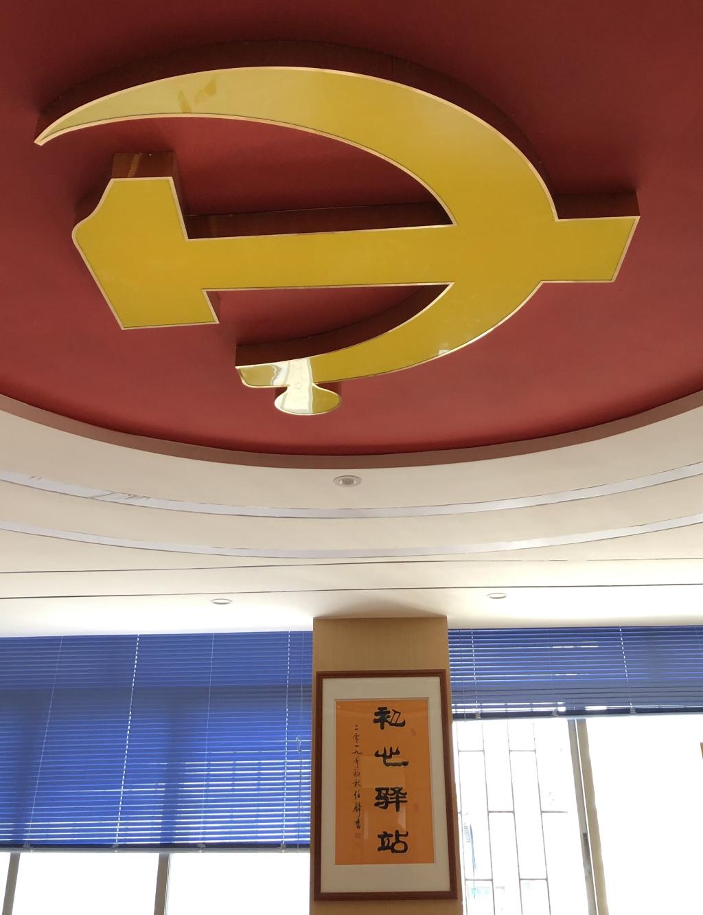 “初心驿站”装饰设计中配有党徽、长城、天安门等标识和元素,以红、黄两色为基准,墙面设有“组织架构”、“学习园地”、“支部风采”、“党费缴交公示”等,同时,配置了一定数量的书籍,为党员、群众提供了一个良好的活动阵地和学习环境,进一步发挥党建带群建的作用。