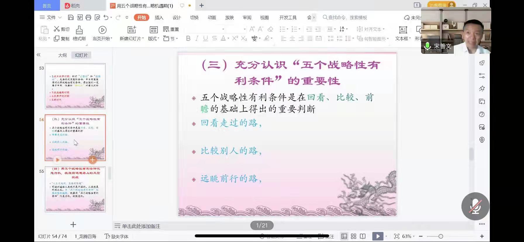 讲座中,宋教授以宏大的历史视野和深厚的理论素养,深刻地阐释了 “五个战略性有利条件”,即“有中国共产党的坚强领导”“有中国特色社会主义制度的显著优势”“有持续快速发展积累的坚实基础”“有长期稳定的社会环境”“有自信自强的精神力量”。这是对新时代新征程上我国面临的战略机遇和显著优势的精辟概括和深刻阐释,具有鲜明理论品格和实践特色,为推动中国经济社会平稳健康发展提供了重要认识论和方法论。深刻认识和准确把握这一重大论断,切实抓住并用好“五个战略性有利条件”,对于我们在百年变局和世纪疫情交织影响下奋进新征程、建功新时代,具有重大而深远的意义。