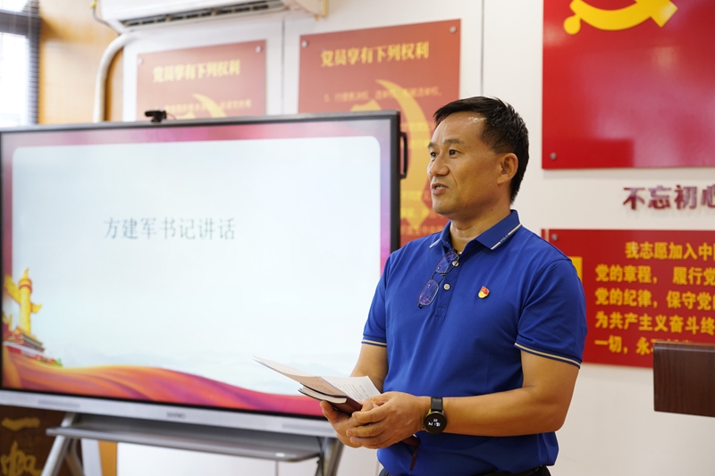随后,党支部书记、校长方建军发表讲话。他结合学校发展实际,强调要以习近平新时代中国特色社会主义思想为指导,紧扣 “立德树人”根本任务,将党建工作与教育教学紧密结合,鼓励全体党员在 “提质、强基、聚力”中发挥先锋模范作用,带动全体教职工形成育人合力。