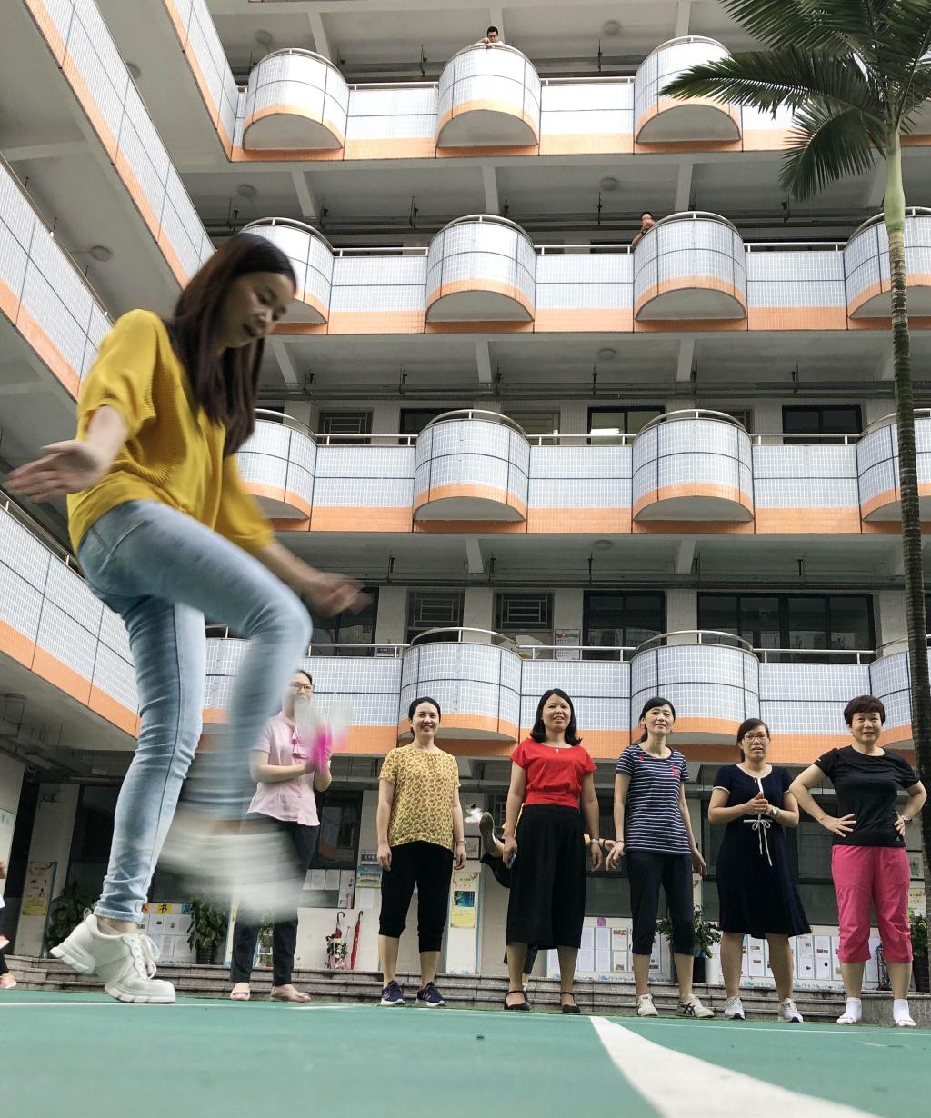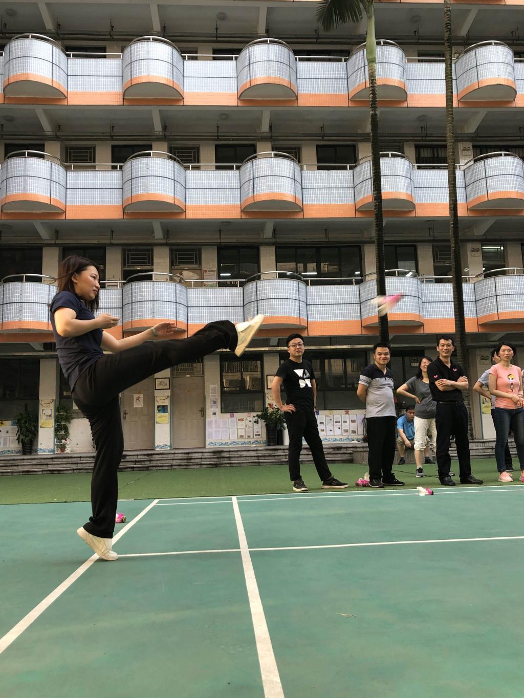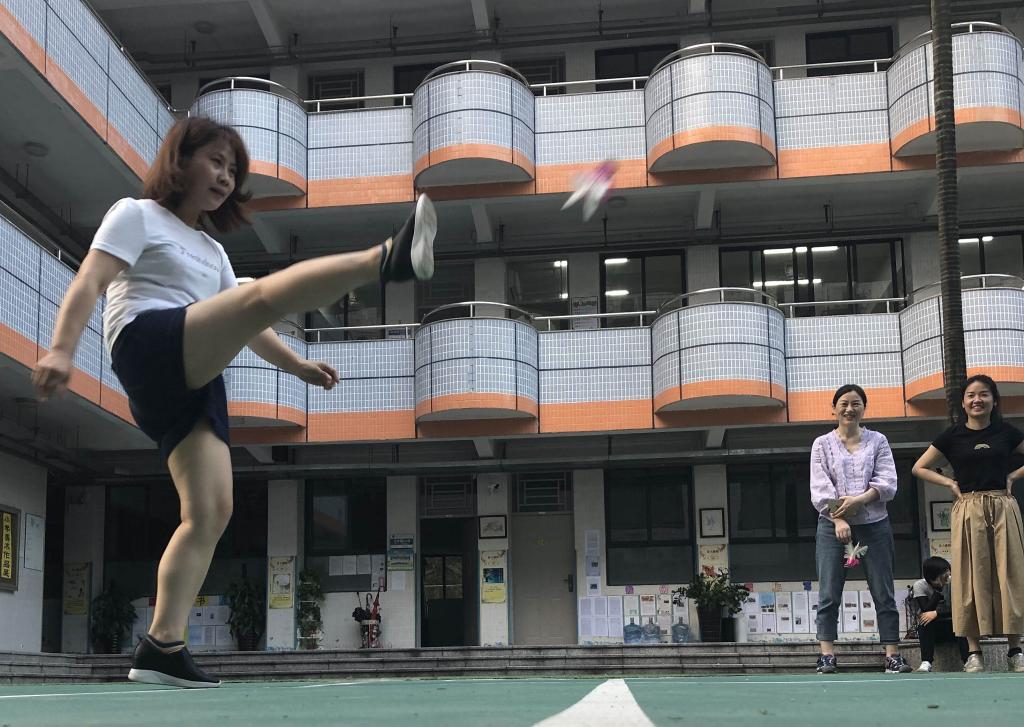 本网讯 为丰富课余文化生活,增强教职工体质,第二届教职工毽球团体比赛活动如期举行。在羽毽上下翻飞中,计数声、欢笑声、喝彩声、加油声传遍校园的操场,老师们跃动的身影、专注的神情为这个初夏带来最青春、最活力的气氛。