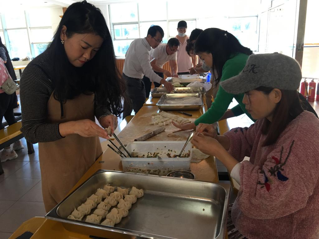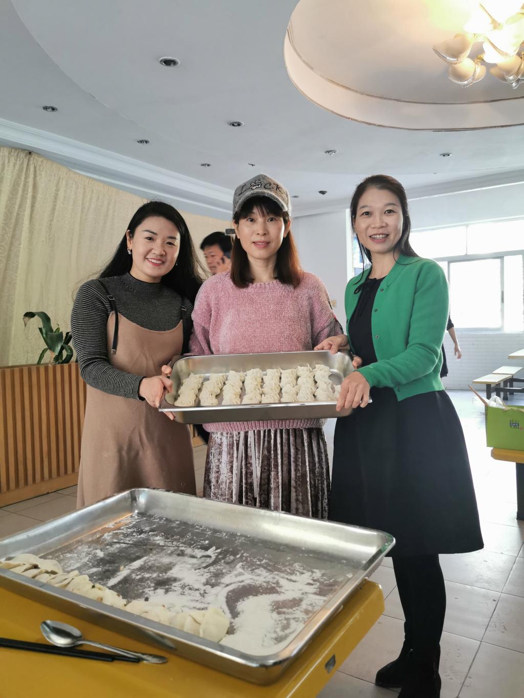 在活动过程中教师们热情很高,随着大家的努力,一个个奇形怪状的饺子出来了,有圆的、有长的、有半月型、鸡冠型、形状各异,大家都乐在其中,场面十分热闹。在教职工的欢声笑语中一盘盘热腾腾的饺子,端上了桌子。此时正好到了教职工就餐时间,陆续到来的老师们被饺子飘荡的香味吸引,大家在一起品尝着自己动手包出的饺子,脸上洋溢着欢乐的笑容。