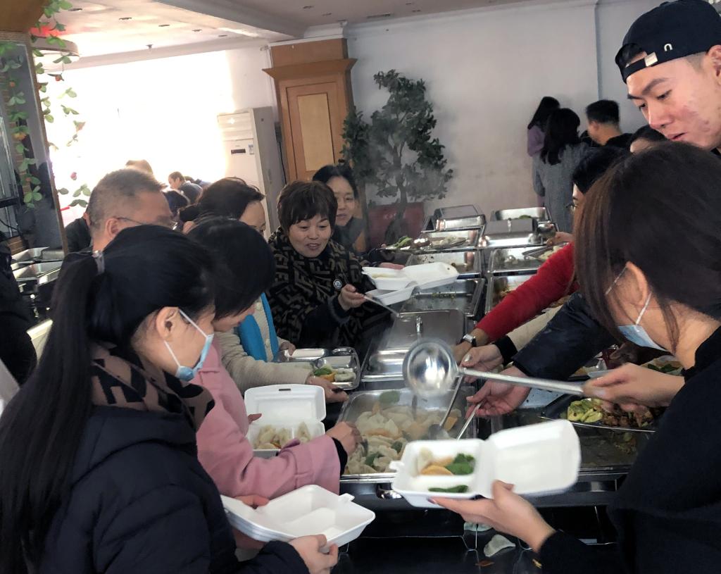 饺子皮擀的厚薄均匀,有的力拼速度,飞“馅”走“皮”,眨眼间一个个饺子就横空出世;有的专注质量,装馅、包裹、捏花、摆盘,一张张雪白的饺子皮整齐排列。饺子包的有的像元宝,有的像小花,形状各异的饺子摆放在盘子里,擀面杖滚动声、碗盆磕碰声、嬉笑交谈声……现场气氛热烈,流程进行顺利,冬至的温暖与快乐充溢在每个人的心里,也包进了每一个玲珑可爱的饺子中。