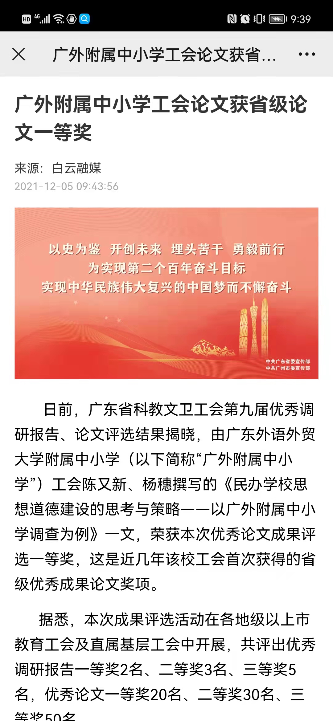 广外工会:附属中小学工会获省教科文卫工会优秀论文一等奖https://mp.weixin.qq.com/s/WuQl3olC6LaPolOrB3lCJA