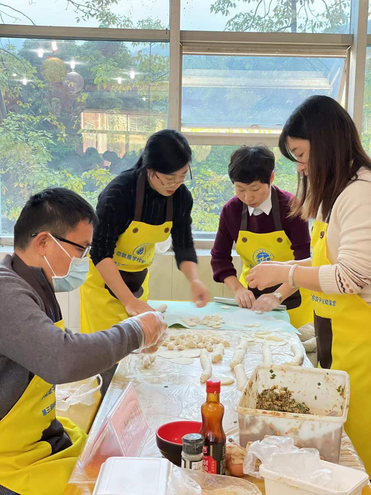 本网讯 冬至是中国一个重要的节气,在中国传统习俗中,有“冬至大如年”的说法。12月21日上午,由学校工会主办,广州福沁原餐饮管理服务有限公司承办的庆冬至教职工包饺子比赛在就餐点进行。50多名来自10个年级组的教职工进行了激烈的比拼,大家在动手的乐趣中欢度冬至,一同感受“冬至大如年”的浓厚氛围。