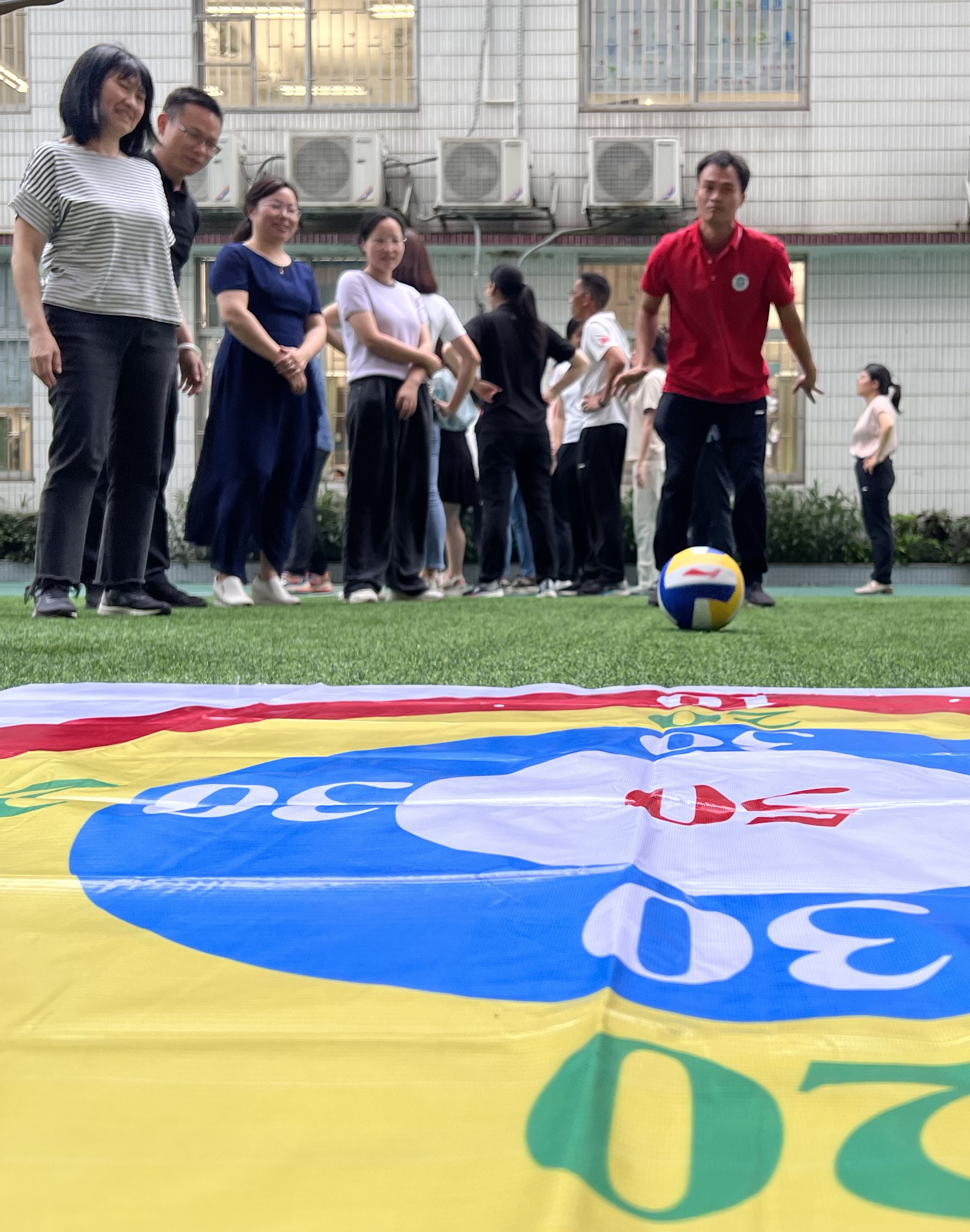 本网讯 5月10至6月6日,学校工会组织了教职工趣味气排球团体比赛。比赛选择在放学以后进行,期间各队准备充分,赛事扣人心弦,最终六年级团队勇夺冠军。