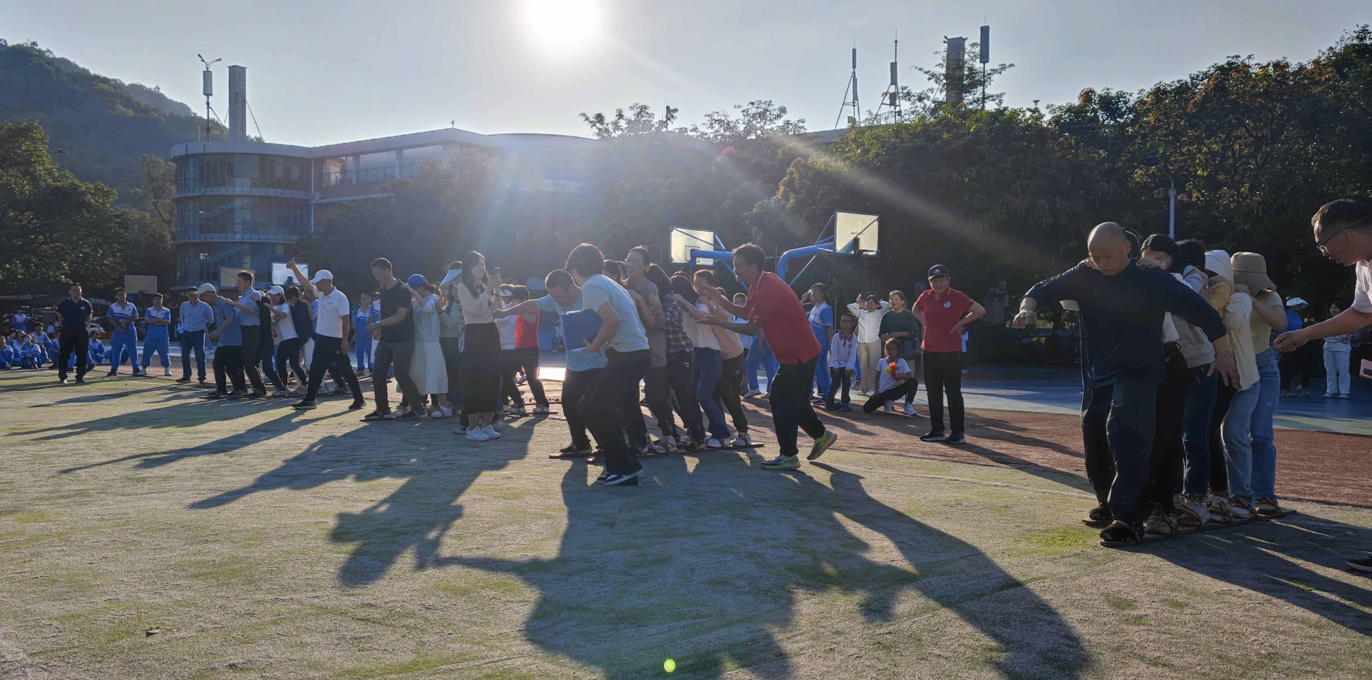 趣味运动会设置“定点投篮”“同舟共济”“无敌风火轮”等3个项目,本次活动将“趣味”融于“团队”中,教职工以年级为单位共组成10支参赛队伍,展开了激烈的角逐。比赛场面热烈、激动人心,营造出一个其乐融融、轻松和谐的校园氛围,留下了一幕幕精彩的画面。