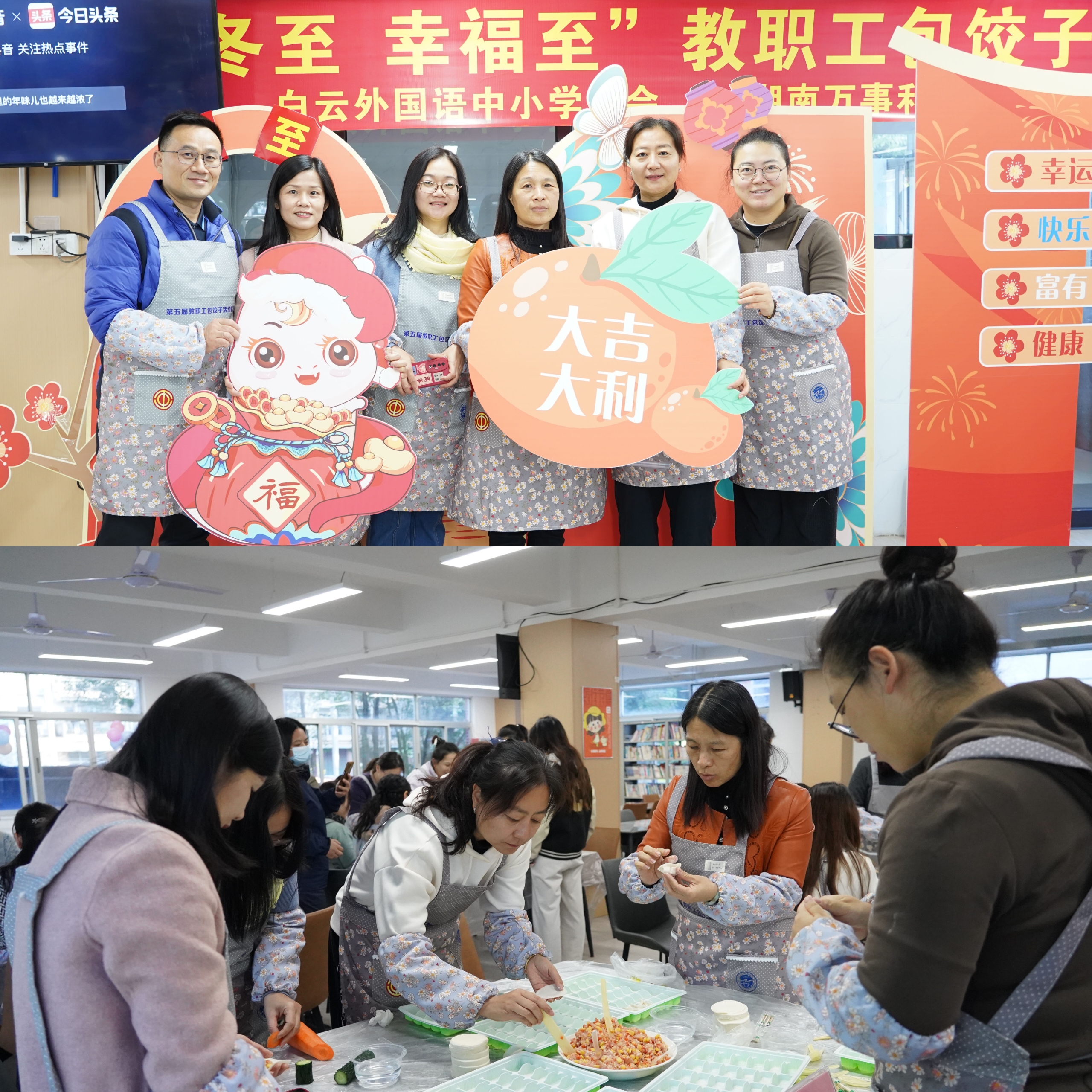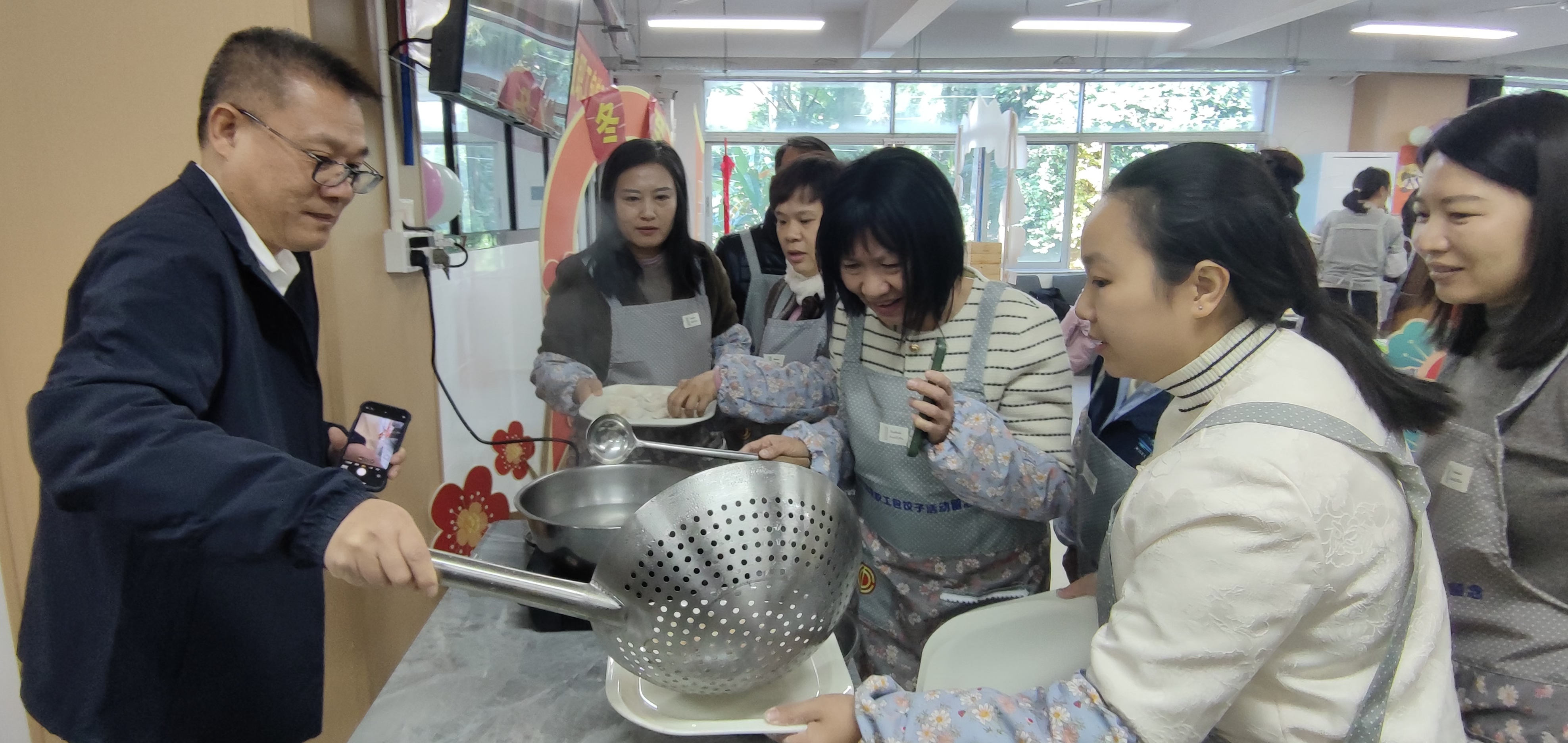 本网讯 12月20日上午,在这暖阳和煦的冬日清晨,我校第五届教职工包饺子活动在食堂二楼拉开帷幕。60余名来自不同年级的教职工代表欢聚一堂,共赴这场别具一格的“饺子盛宴”,吸引了众多师生驻足欣赏。