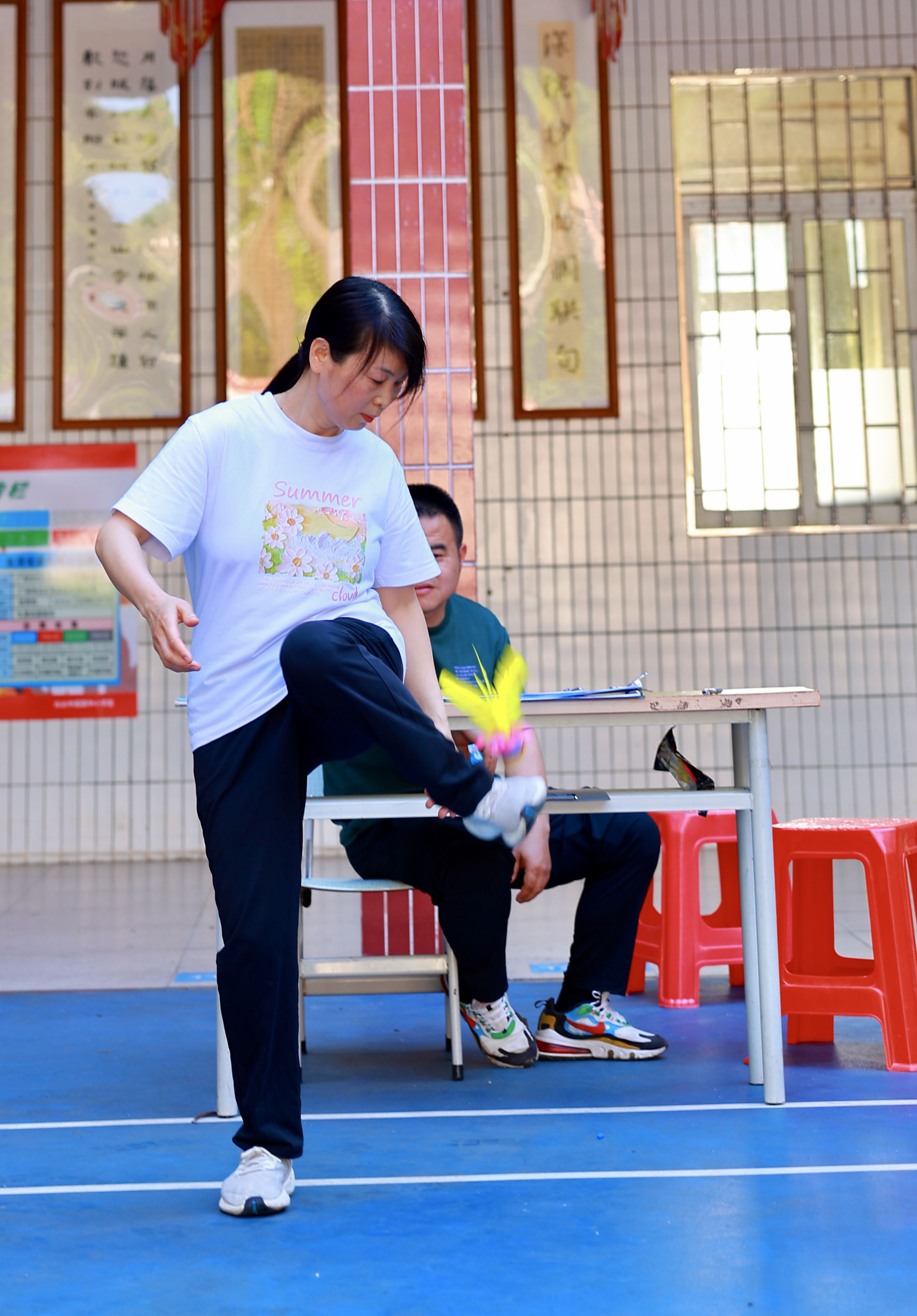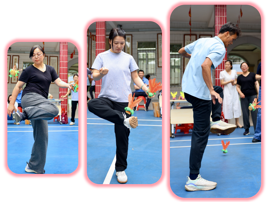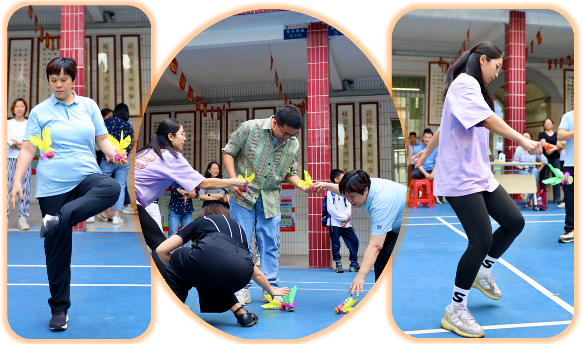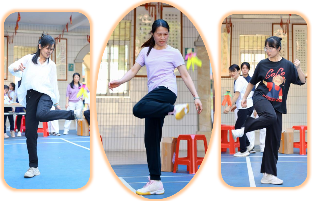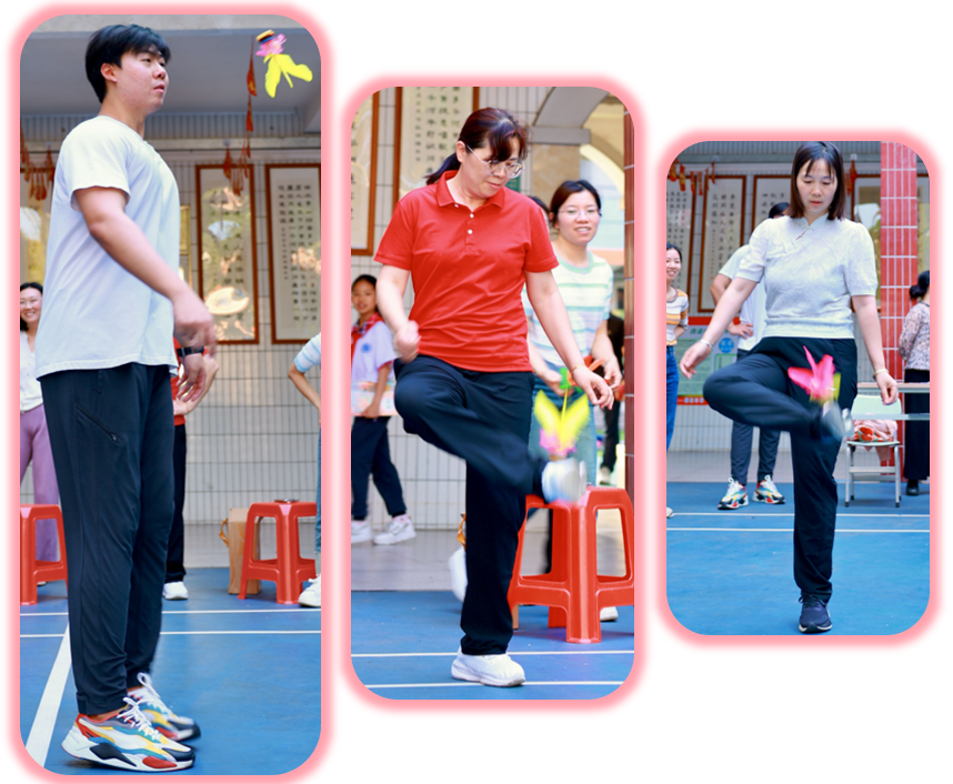 赛事分三阶段:清明之后,各年级组悄然蓄力。庑廊庭院间,毽影翩跹,课间操时分常见教工们切磋“足上功夫”。一年级组罗燕维老师笑言:“此技可比批改作业,眼明如炬,脚快如电,心细若丝,三者缺一不可!”