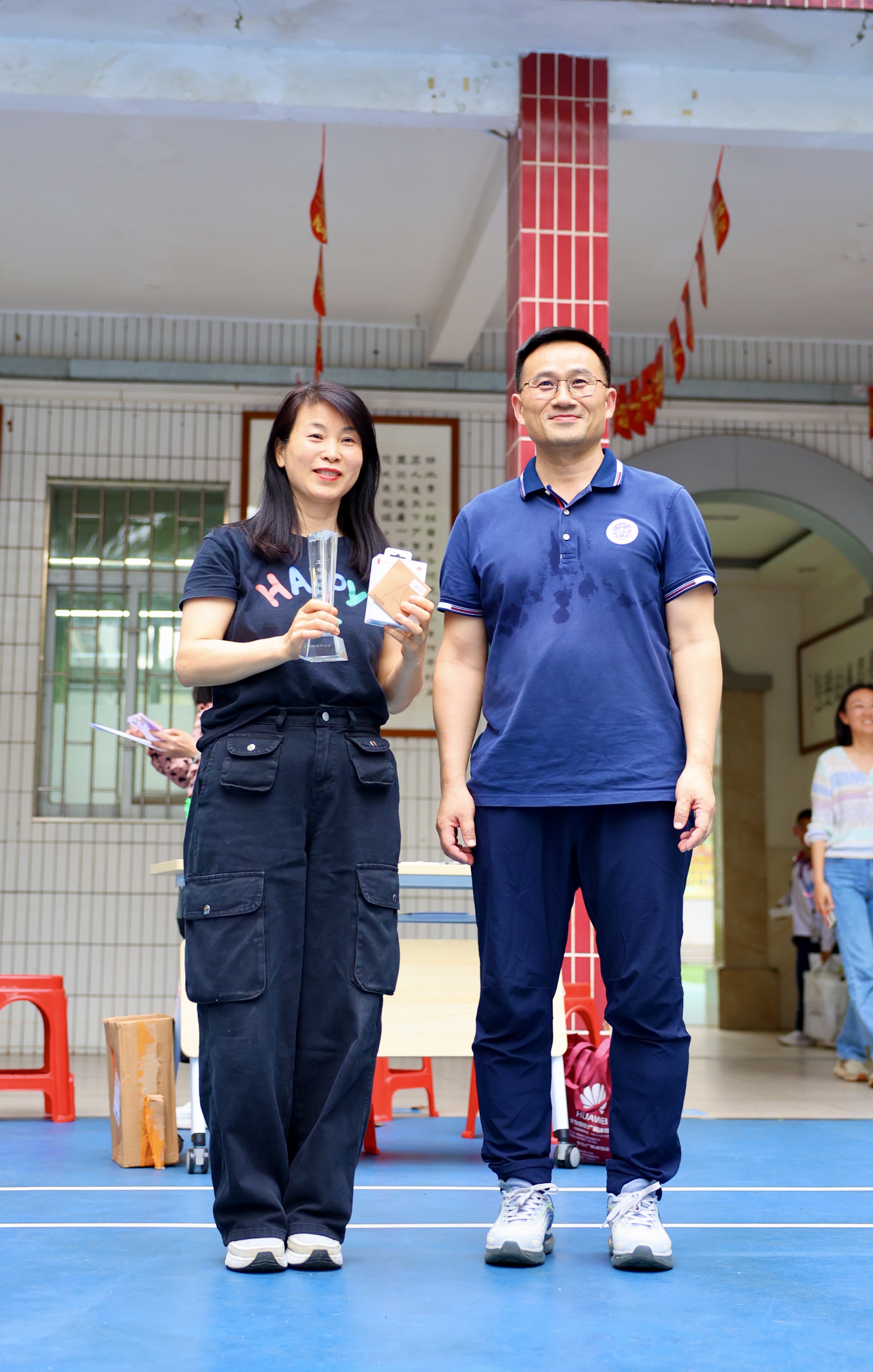 初赛日,各组斗智斗勇,积分厮杀;决赛时,羽毽如流星贯日,积分榜风云迭变。行政后勤组麦丹妹、谢元建、李小丽老师足下生风,毽球似灵蝶穿花,终以223记垫球摘得桂冠。六年级、七年级分列亚季军,九年级、二年级、八年级紧随其后。最惊艳者当属一年级罗燕维老师,足尖轻点如蜻蜓点水,一气呵成81记垫球,斩获“得分王”殊荣,华为手环加身,笑颜映夕阳。