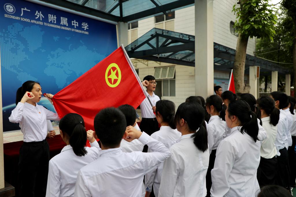 在这庄严的时刻,又有一批优秀的同学光荣加入中国共产主义青年团。团委书记王琪宣读名单并做讲话。他勉励的同学们争当优秀青少年,早日加入共青团,完成新时代赋予的历史使命。面对团旗,新团员举起右拳,庄严宣誓:我志愿加入中国共产主义青年团......嘹亮的誓言激励着在场的每位同学。