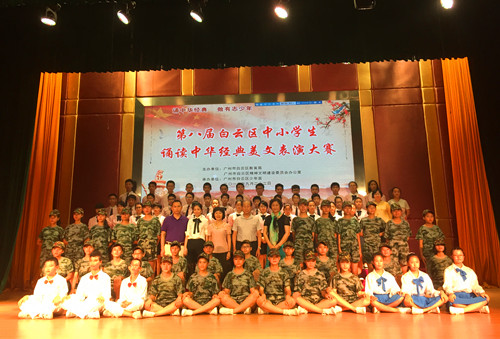 本网讯9月22日,白云区第八届白云区中小学生诵读中华经典美文大赛在白云区少年宫隆重举行,本届大赛为白云区教育局、白云区精神文明办主办的品牌活动,旨在中小学生当中通过诵读中华经典、做有志少年。我校初二4班排演的《正气歌》代表新市片参加了此次比赛,并斩获了第二名的好成绩。