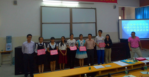 薛博文(左二)参加白云区践行核心价值观演讲活动获奖