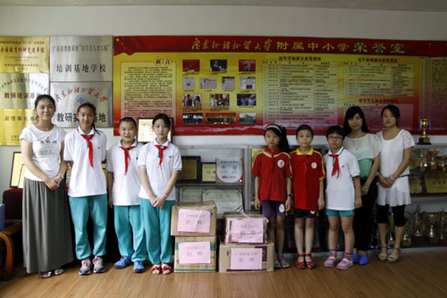 本网讯7月1日下午,少先队员们把自己心爱书籍整理了以后,一捆捆的装上汽车,送到贵州省瓮安县天文小学和白云龙兴小学的小朋友手中,希望让受助同学也能感受阅读的快乐,开启更多小朋友的心灵和智慧。