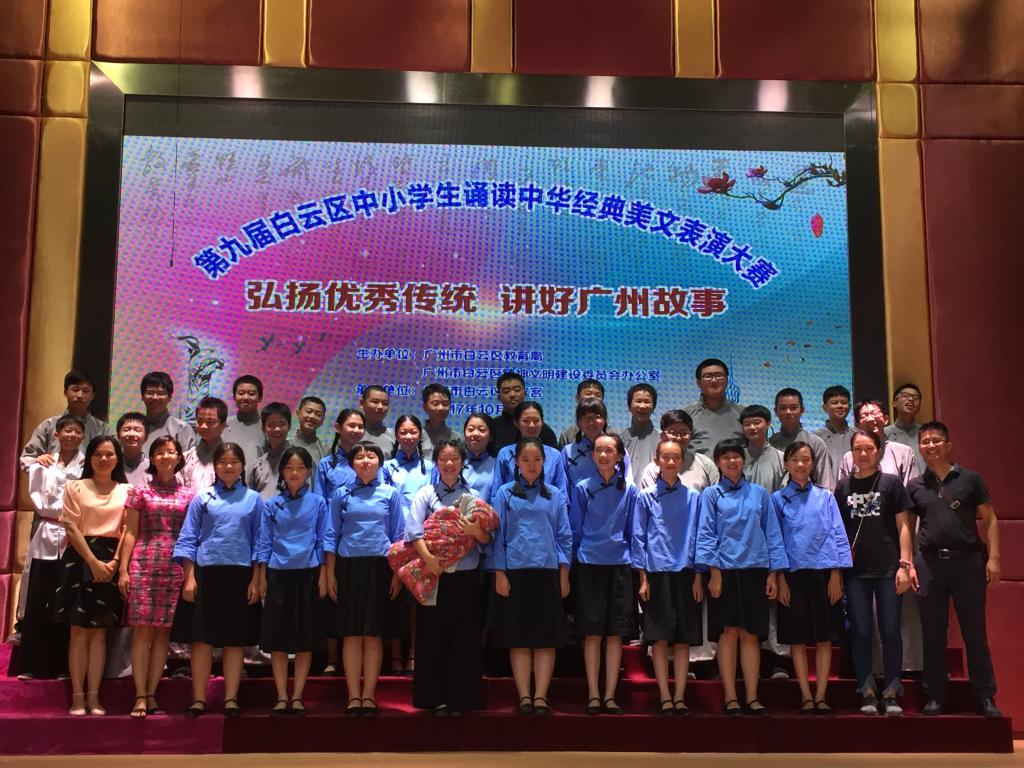 本网讯  10月11日下午,我校师生一行28人驱车前往白云区少年宫参加由白云区教育局、白云区精神文明办主办的第九届中小学生诵读中华经典美文表演大赛。