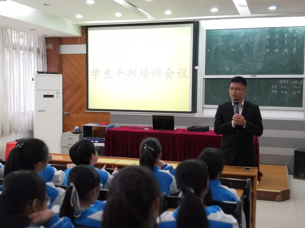 最后,由袁宇迪副校长主讲开始了对学生干部的培训。袁校长着重对学生干部的主动性、创造性提出了自己的看法和要求;同时对部门工作举例进行了指导;对接下来的主题团日社会实践活动也给出了指导性的意见。