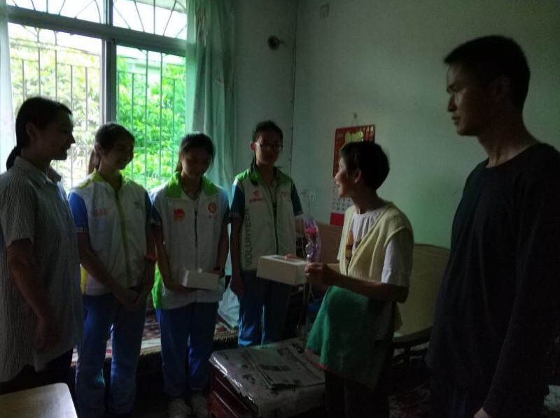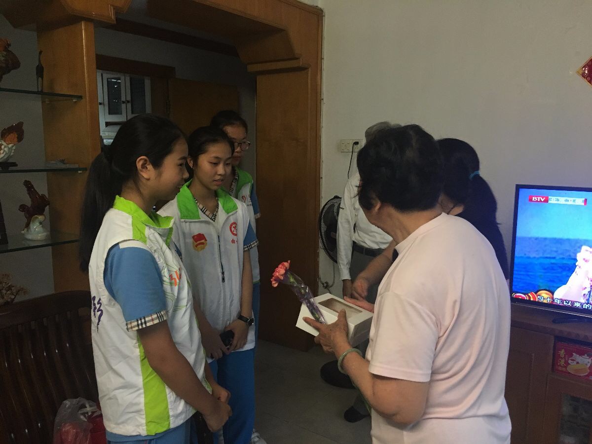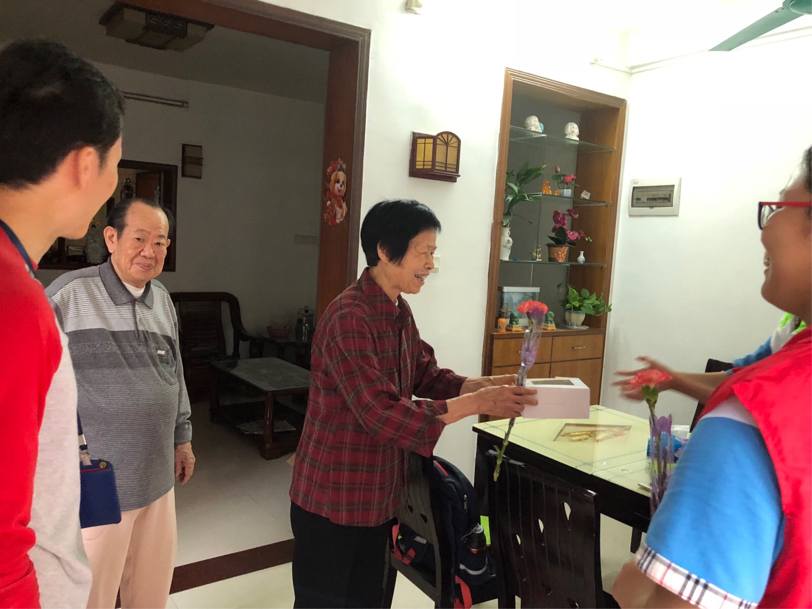 在大家的共同努力下,一个个作品出炉了。大家拿上蛋挞、蛋糕和居委会精心准备的鲜花为社区单亲妈妈献上他们的作品,并说上一句一句"阿姨,母亲节快乐!"居民对于同学们的到来表示十分的开心和惊喜,想不到在这样的节日里,同学们如此的贴心,社区时刻惦记着她们,让她们时刻感受着党和国家,还有政府的关怀,让她们提前感受节日的快乐气氛!