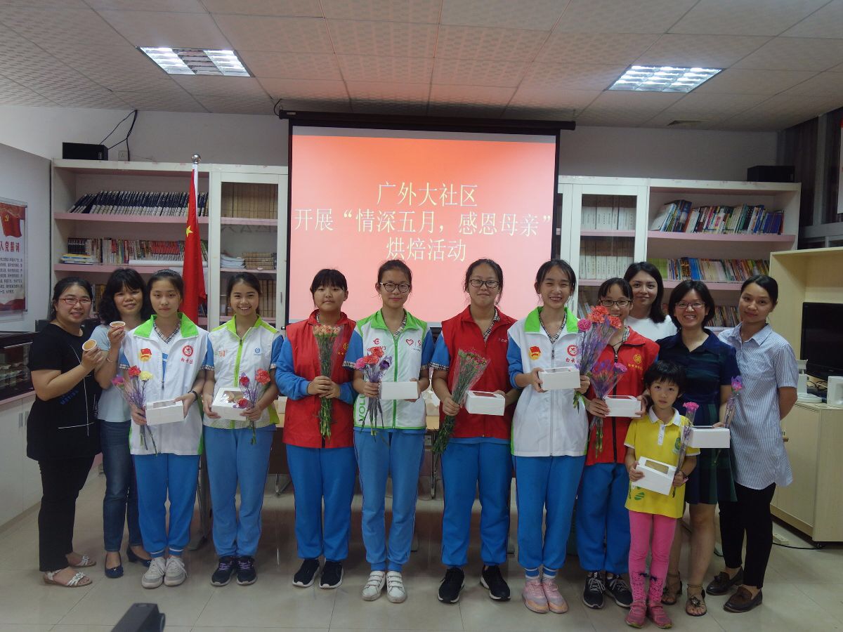 5月11日下午,我们校团委组织团员在广外大社区居委会开展"情深母亲节 烘焙感恩心" 烘焙活动。同学们亲手制作蛋糕,作为一份特殊的母亲节礼物送给社区的单亲、高龄特殊母亲,为她们送上一份节日的祝福和问候。用心烘培甜蜜、用爱点缀温馨,共创美好幸福社区。