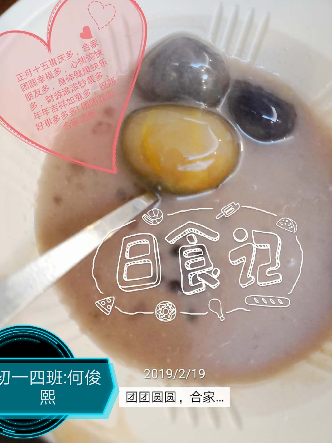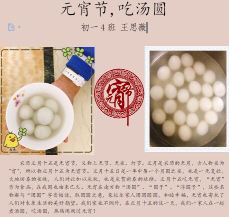 从小我就很怕火,妈妈让我学做菜我总是拒绝的。可是我已经12岁了,不能总是逃避内心的恐惧,要积极地面对它、打败它。所以趁着今天的元宵佳节,我决定亲自做一碗甜甜的元宵给爸爸妈妈!也给自己一个甜甜的鼓励!来年也要积极的面对我所面对的困难,不逃避,不放弃!!